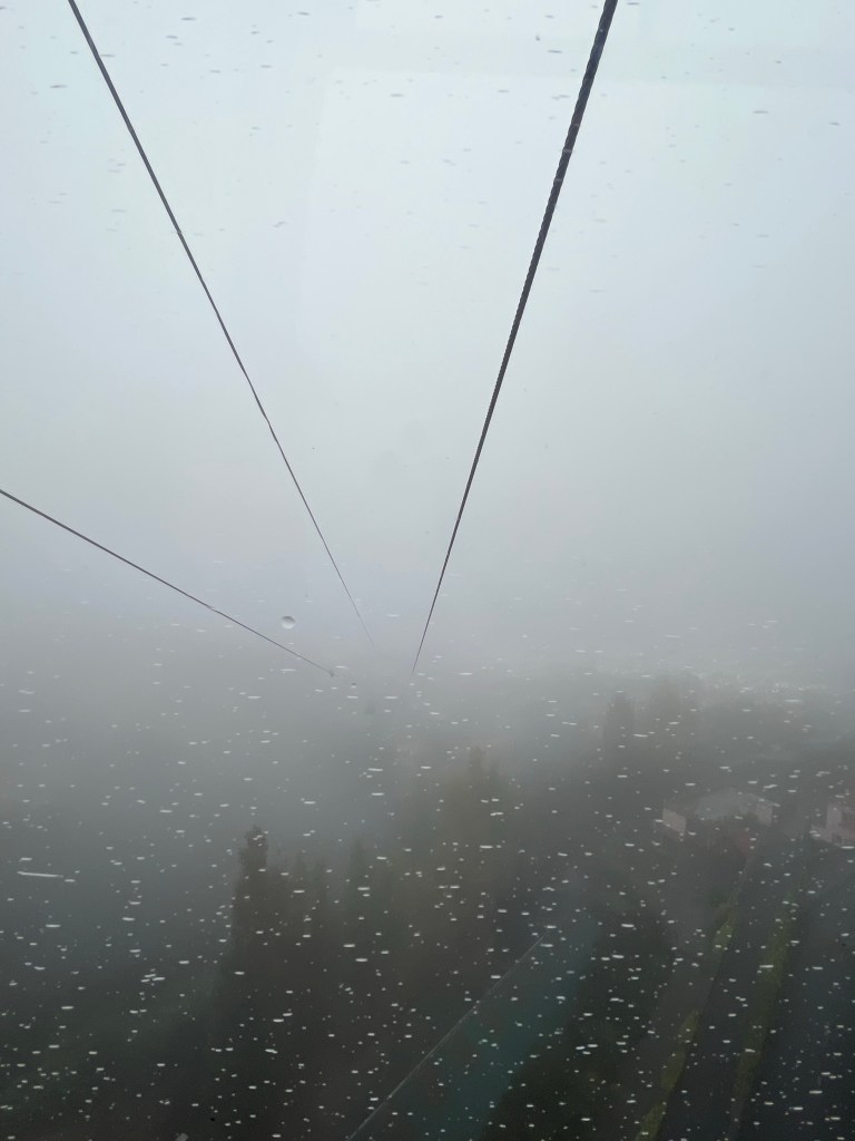 W czasie naszej wizyty chmurę na chwilę się podniosły, ale potem zaczął padać drobny deszcz i ze względu na dzieciaki, szybkim krokiem skierowaliśmy się do wyjścia. Na szczęście czekał na nas atrakcyjny zjazd kolejką z powrotem do centrum Funchal.