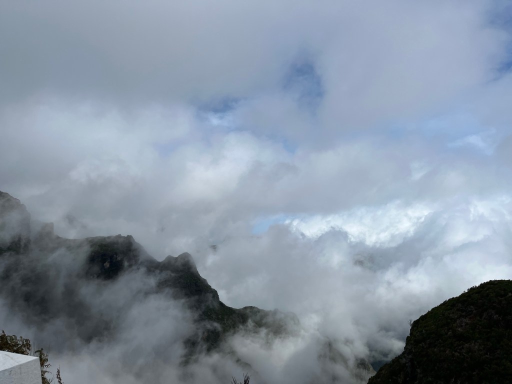 Dalej zdecydowaliśmy się na jazdę w stronę Pico do Areeiro, ale z każdą minutą było coraz więcej chmur. Kiedy dotarliśmy na punkt widokowy przy samym szczycie , drugim najwyższym na `Maderze, była cały pokryty chmurami. Pierwszy raz byliśmy tam w taką pogodę. Wietrznie i zimno już bywało. Tym razem było jeszcze bardzo wilgotno. I pole widzenia bardzo skąpe.