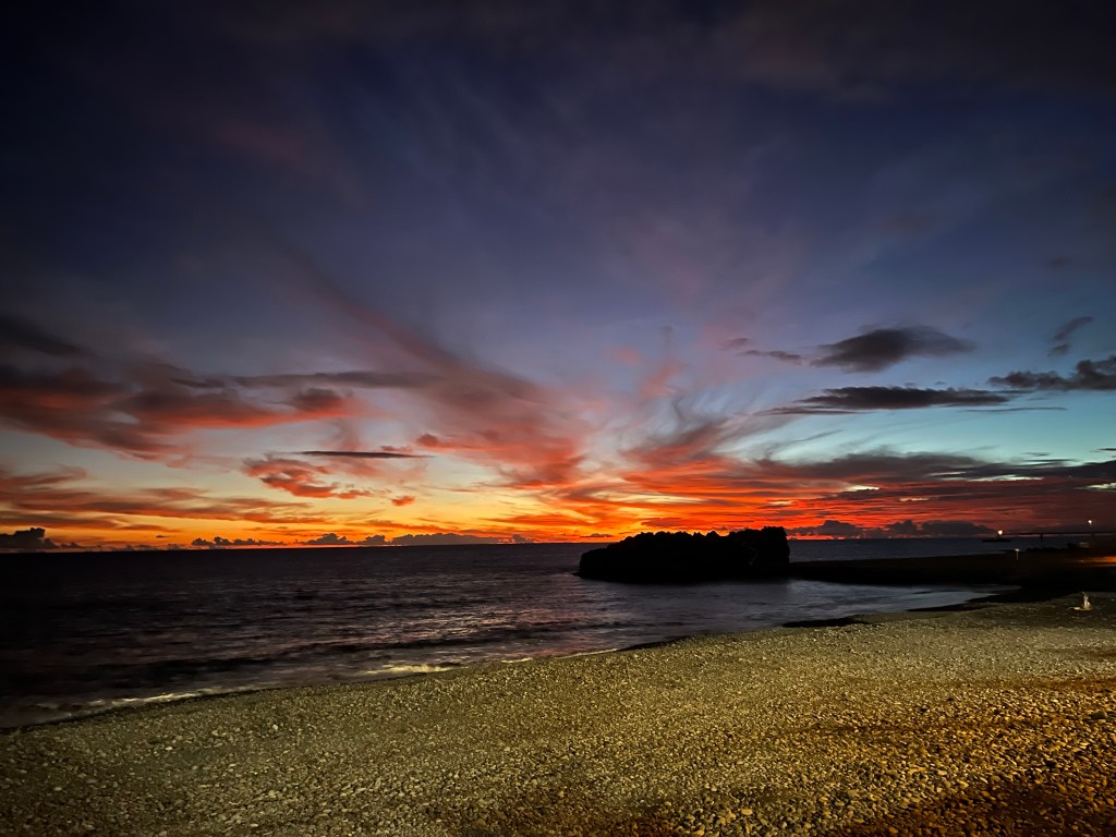 Przy kolacji ze znajomymi w knajpce przy plaży mogliśmy podziwiać zachodzące słońce.