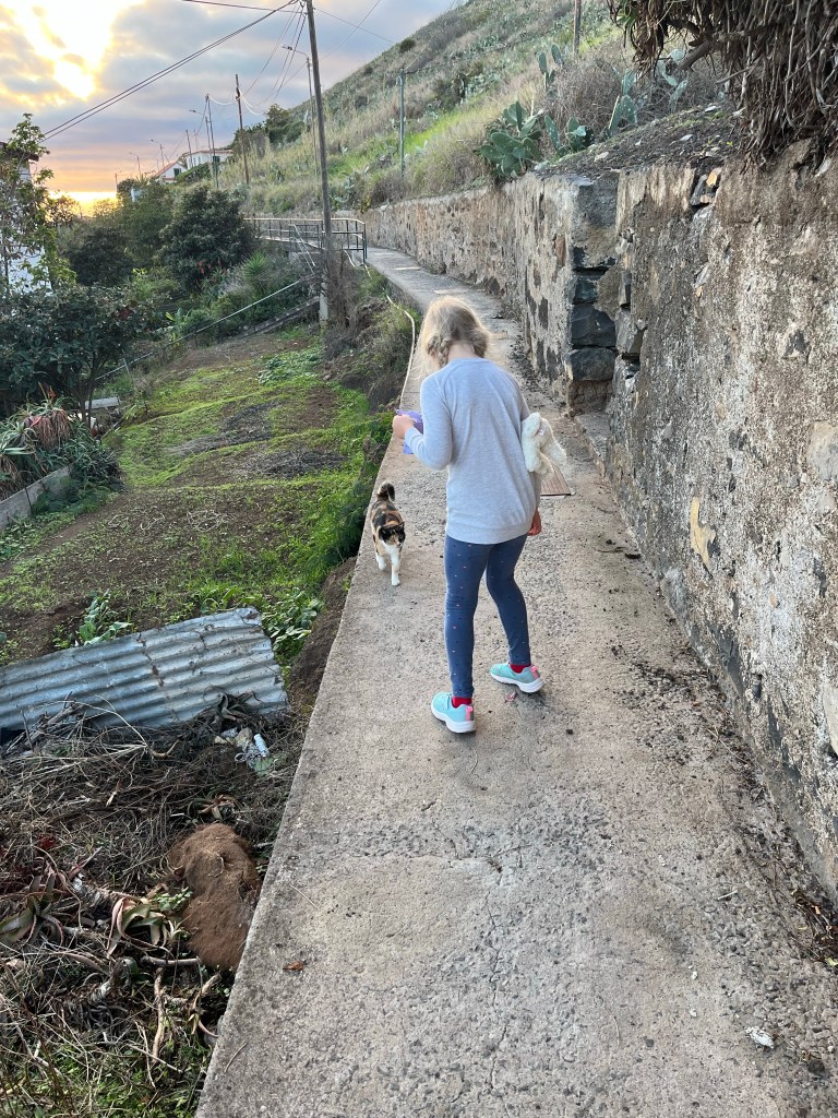 Wieczorkiem wybrałyśmy się z Młodszą na spacer dla zdrowia. Gorączka została zwalczona, więc uzbrojone w mikroskop podręczny i saszetkę z kocią karmą poszłyśmy na naszą najbliższą lewadę- Levada dos Piornais.