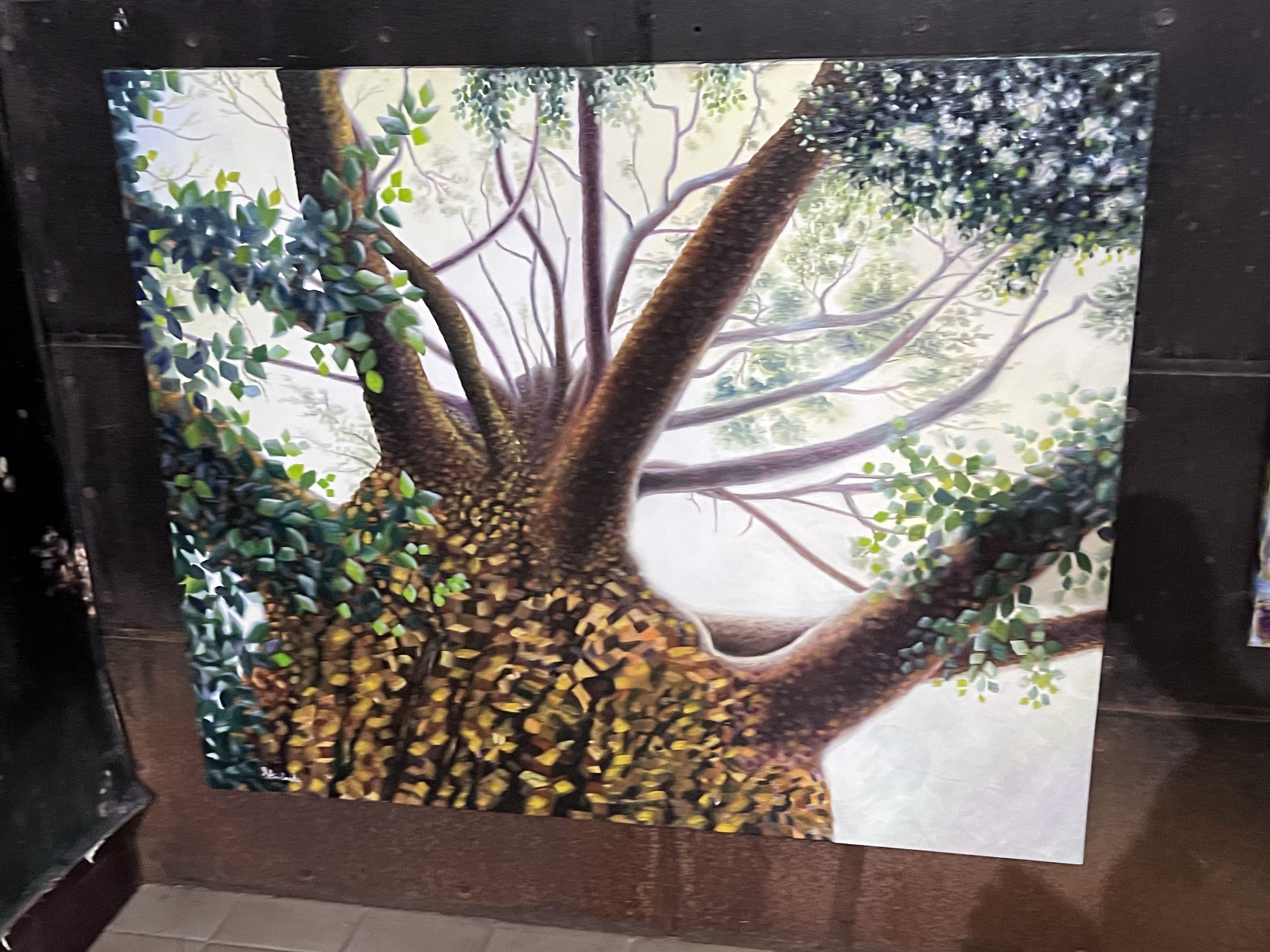Świętowania ciąg dalszy- spacer, nazwijmy to, kulturalny– w poszukiwaniu obrazów do mieszkania. Nic pasującego nie znaleźliśmy, za to wpadło nam w oczy swojsko brzmiące nazwisko twórcy jednego z dzieł. W naszym regionie, to bardzo popularne nazwisko.