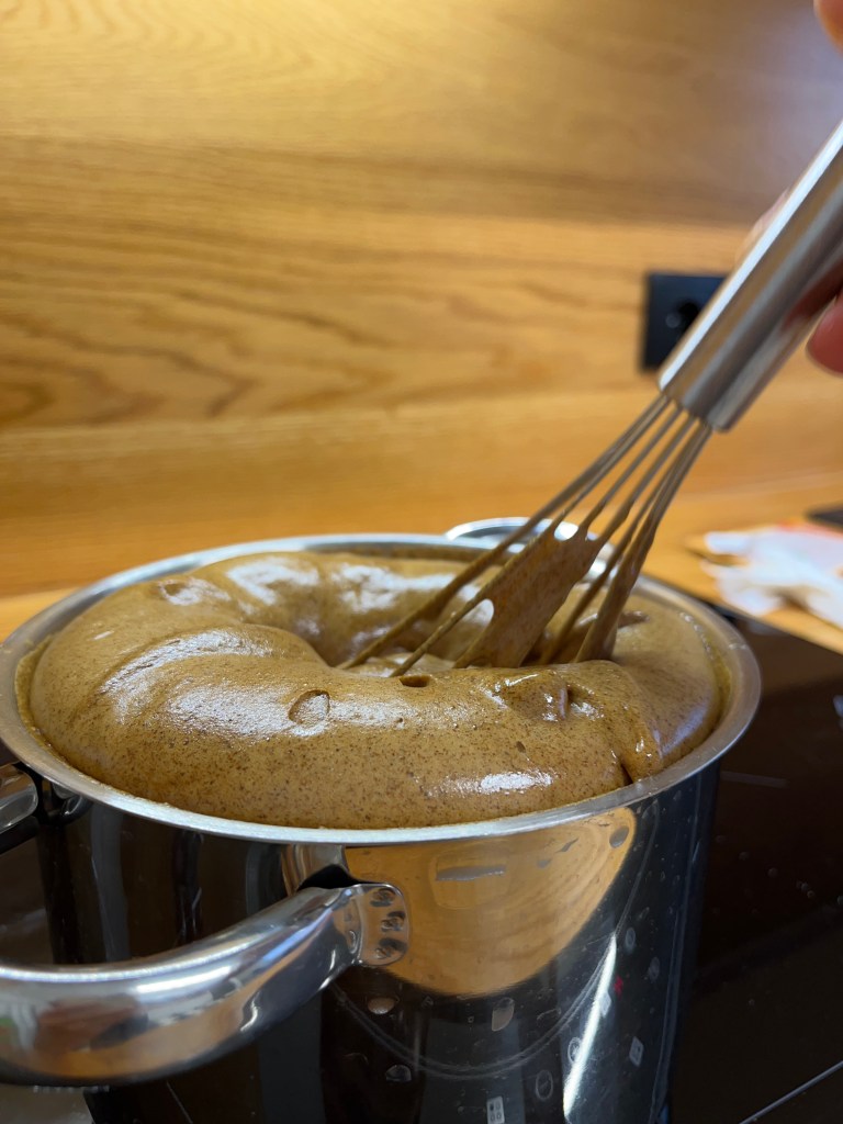 Przy okazji był nasz ulubiony kuchenny eksperyment chemiczny. Gorąca masa miodowo-przyprawowa po dodaniu sody kuchennej błyskawicznie zamieniająca się w pianę próbującą uciec z garnka. I te zapachy!