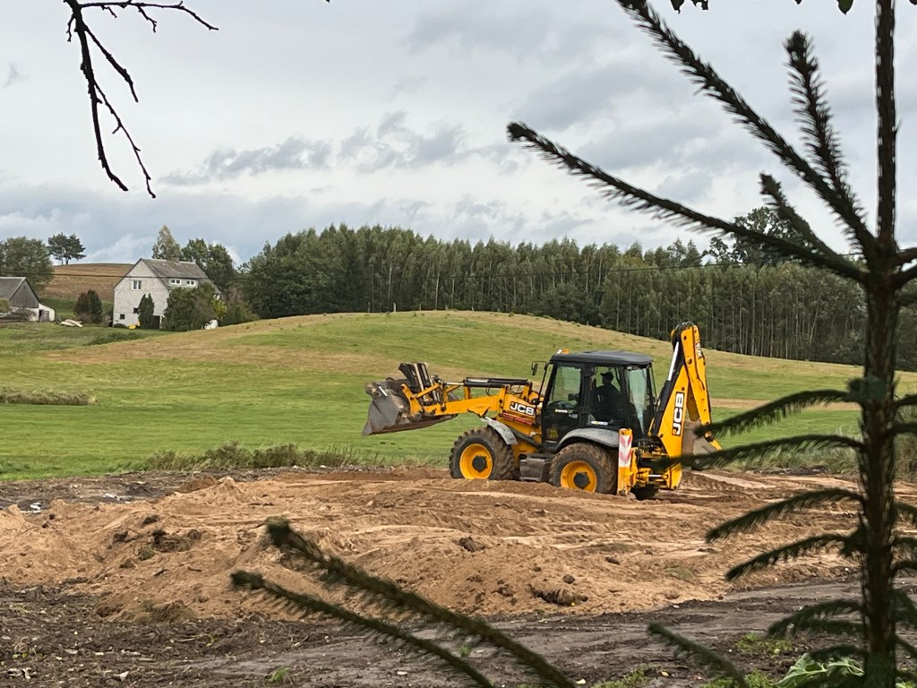 Wrzesień- Polska- burzenie obory w naszym siedlisku i równanie terenu.