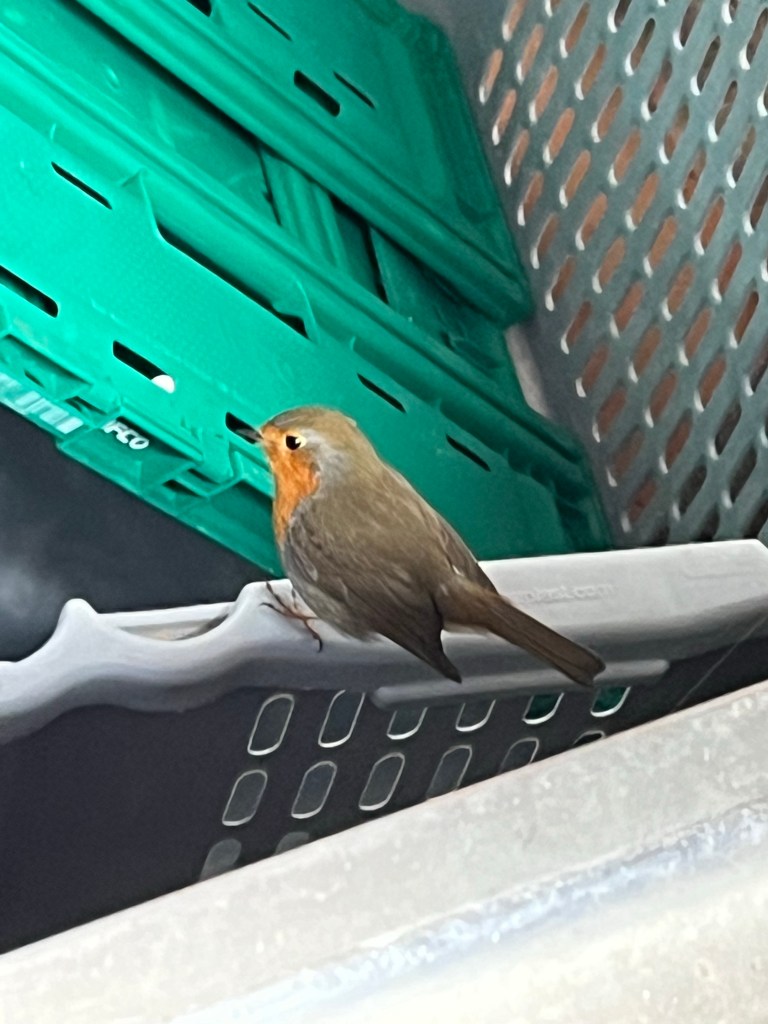 Przy ostatniej wizycie spotkaliśmy najnowszych mieszkańców ogrodu- flamingi. A w kawiarni po raz pierwszy z tak bliska widzieliśmy rudzika.