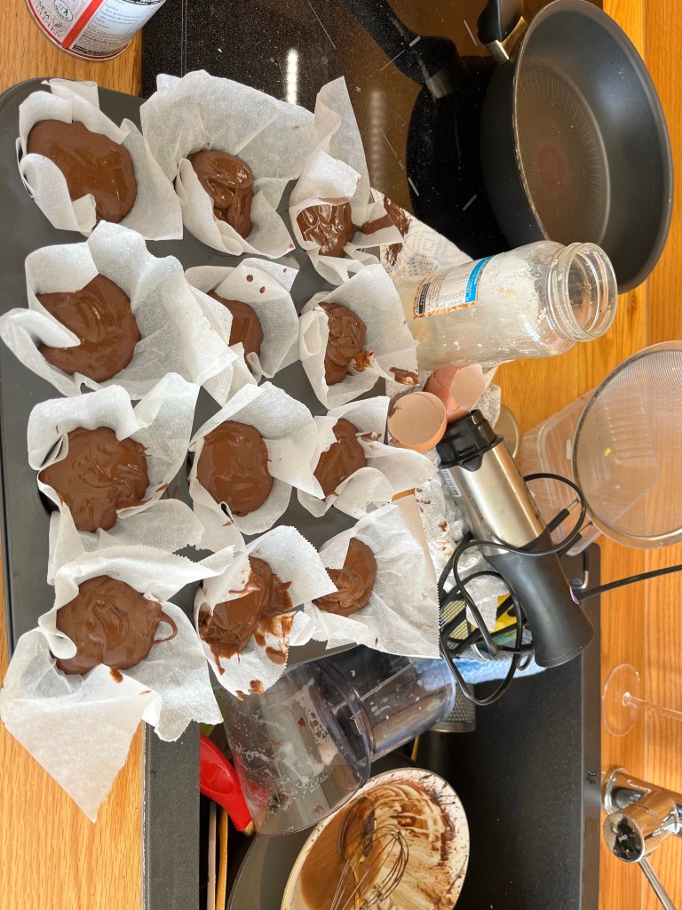 Eksperymentowanie z aquafabą z cieciorki. Miał być mus czekoladowy, wyszły ostatecznie smaczne babeczki.
