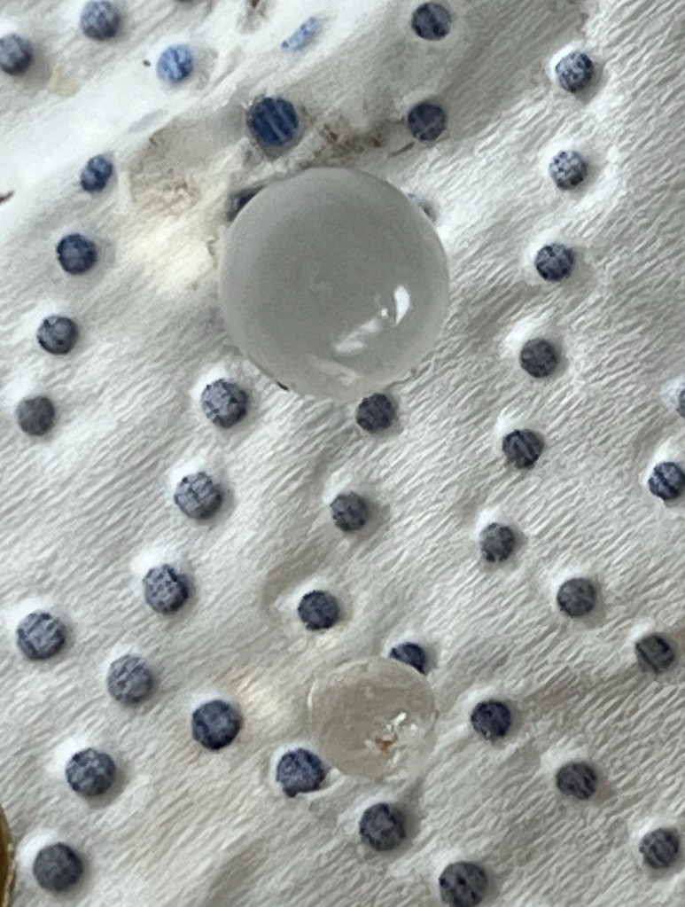 Dzięki wytrwałości Młodszej dowiedzieliśmy się, że ryba ma okrągłą soczewkę. I to podwójną jakby. W kulce galaretowatej jest druga kulka, twarda. Ja przy pierwszej kulce się ucieszyłam, że to takie ciekawe, bo nigdy nie widziałam oka ryby w środku. A córka postanowiła drążyć ( ciąć) dalej i znalazła tą drugą.