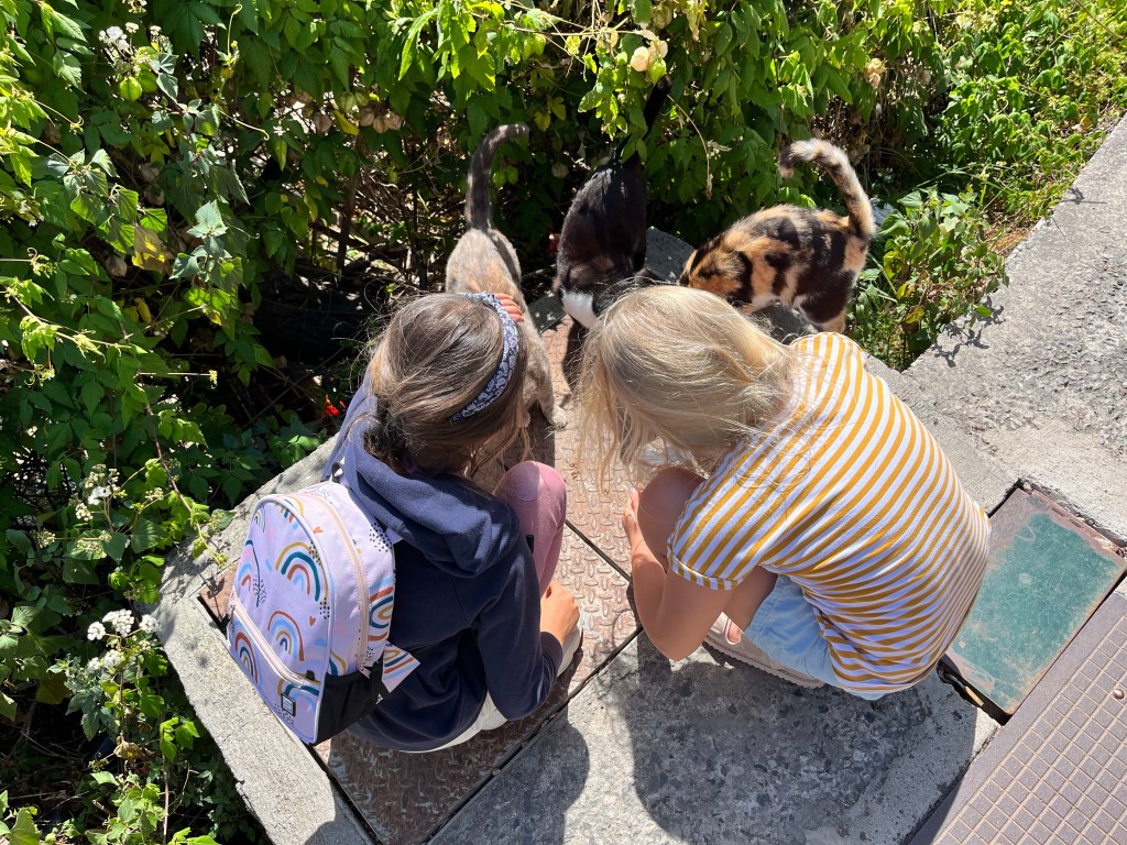 W kwietniu był też czas na spotkania z przyjaciółmi, pizzę i wspólne filmy. Oraz na nasze stałe rozrywki, jak spacer na karmienie kotów czy pluskanie w basenie.