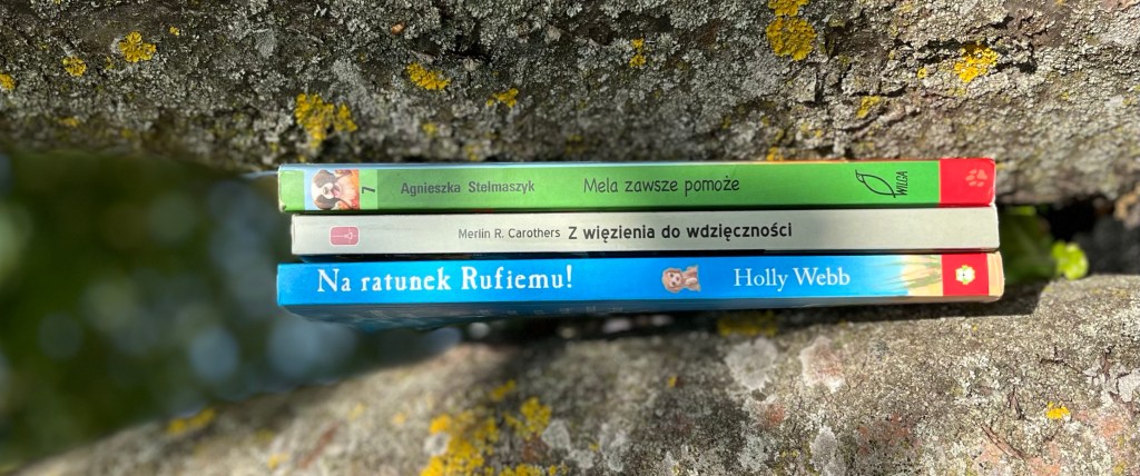 Przeczytałyśmy całe przygody szczeniaka Rufiego i opiekującego się nim rodzeństwa. Było chwilami dramatycznie, ale wszystko dobrze się skończyło. Uff.