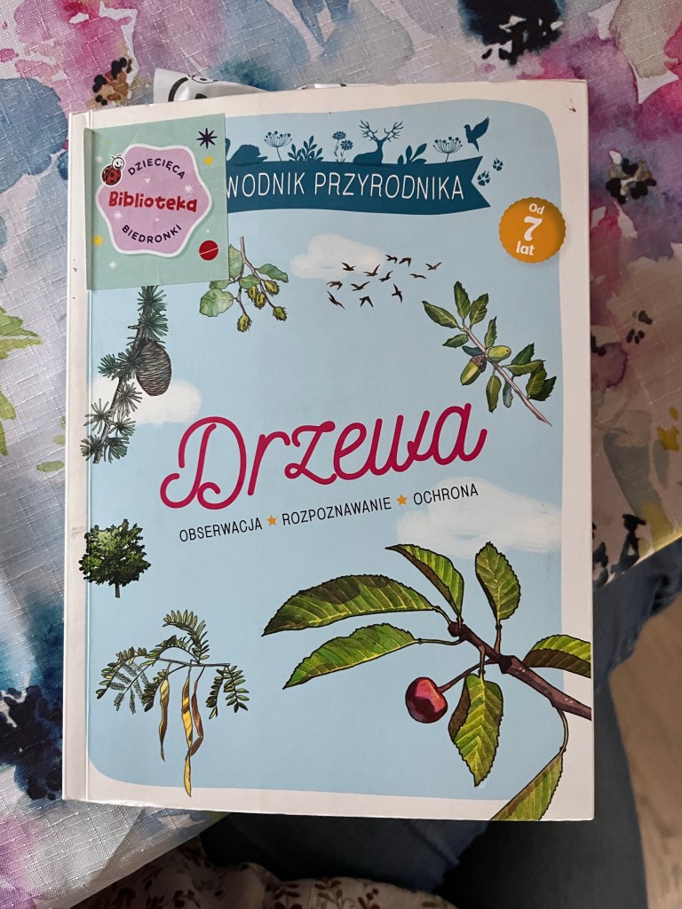 Pierwsza z książek wypożyczona z Biblioteki Biedronki. Dość ciekawa pozycja o drzewach. Choć napisana wcale nie bardzo prosto. Ratują przyjemne, realistyczne ilustracje. Na razie czytamy sobie część ogólną o drzewach. W dalszej są pokrótce opisane konkretne gatunki.