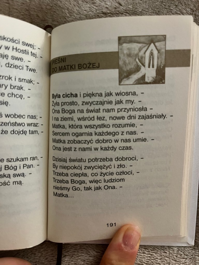 Ta mała książeczka jest nam pomocą ostatnio szczególnie przy poznawaniu pieśni. Córka prosi codziennie o zaśpiewanie 1-2 pieśni religijnych razem. Uczy się melodii i tekstów. I chyba zaspokaja też braki, bo uczestnicząc w liturgii niedzielnej po portugalsku, nie ma jeszcze wielu okazji do śpiewu.