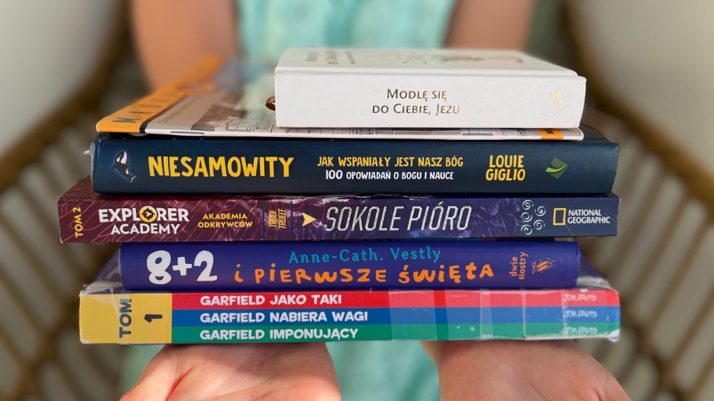 Stosik przeczytanych książek jest niewielki i wielki jednocześnie. Przy takiej ilości zajęć i rozrywek nie spodziewałam się, że znajdziemy tyle chwil z książkami. A jednak. Dobrze mieć w domu więcej książkofilów niż zwykle.