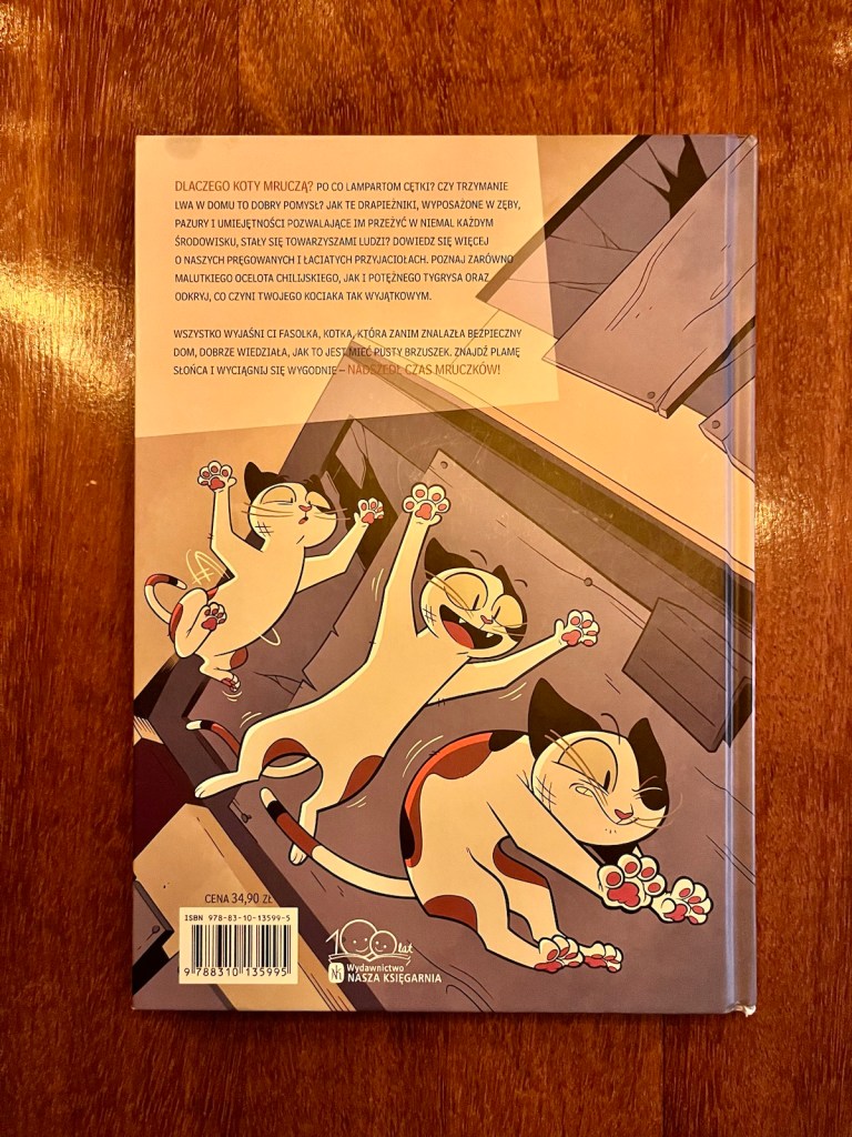 Ten mikołajkowy prezent też dokończyłyśmy. Na chwilę nam zaginął w stosie książek do przeczytania. Dzięki tej książce poznałyśmy mnóstwo ciekawostek o kotach. A co najważniejsze, zostawiała nas ona z pytaniem do rozważania.