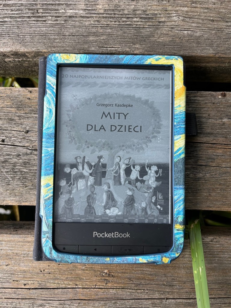 Przeczytałyśmy na razie 5 mitów. Jakoś nie przekonała mnie ta wersja i język, jakiego używa autor. Wolę klasyczne już mity greckie w wersji Jana Parandowskiego. Chociaż rzeczywiście nie muszą się one nadawać dla prawie dziewięcioletniego dziecka.