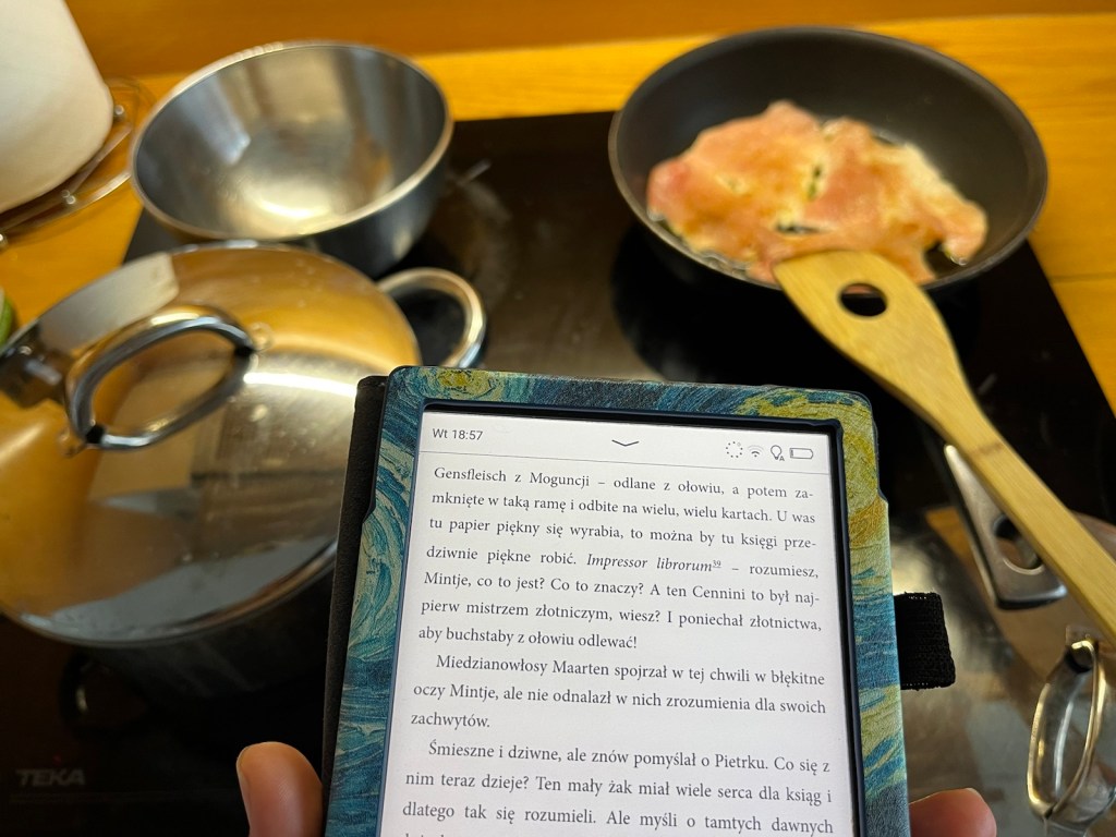 Na półce czeka kontynuacja upolowana przez męża w antykwariacie.