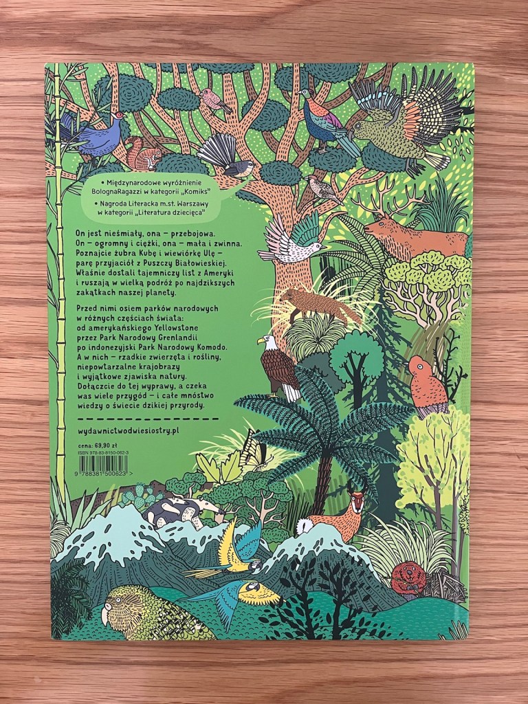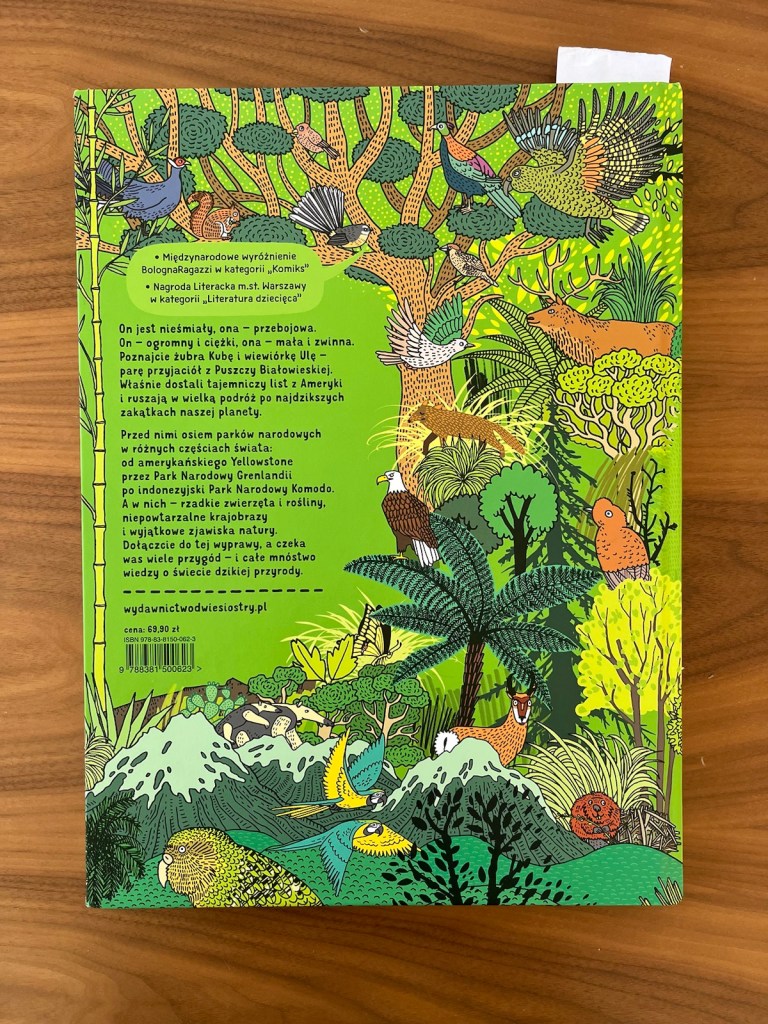 Książka graficzna. Trochę komiksowa. Przedstawia najciekawsze fakty z kilku parków narodowych na świecie, sporo faktów historycznych i przygody bohaterów w kolejnych parkach.