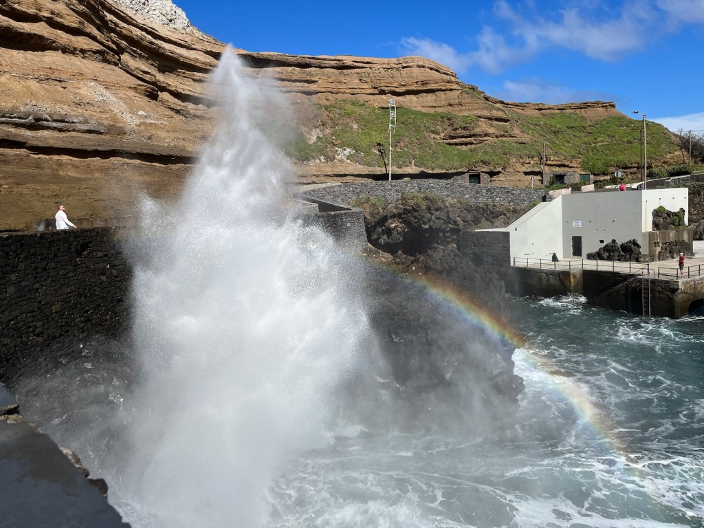 Przy okazji pospacerowaliśmy z plaży Alagoa do centrum Porto da Cruz wzdłuż wybrzeża. To świetne miejsce na łatwy spacer z pięknymi widokami i i atrakcjami w postaci tęczy i pryszniców z morskich fal. Na pewno tam wrócimy po więcej.