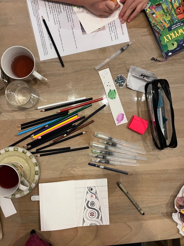 Kolejne spotkanie ze stylami w sztuce, tym razem inspiracja art-deco. Warsztaty z Martą Horodniczy zawsze wnoszą nam coś nowego. Jest okazja popróbowania różnych przyborów, kolorów, pomysłów.