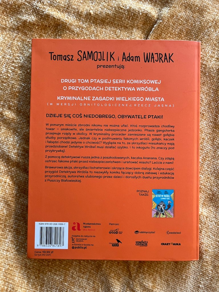 Czy tytułowy bielik taki dumny, bo znajduje się w godle Polski? W tej książeczce obaczymy, co ciekawego można jeszcze spotkać w Wolińskim Parku Narodowym. Jak do tej pory cała seria jest dobrym materiałem do wzbudzenia w dziecku zainteresowania polską przyrodą. Najważniejsze fakty sprytnie wplecione w żubrzą przygodę. Rysunki w stylu pana Samojlika, siłą rzeczy uproszczone. Nie na tyle jednak, by nie oddawać rzeczywistości.