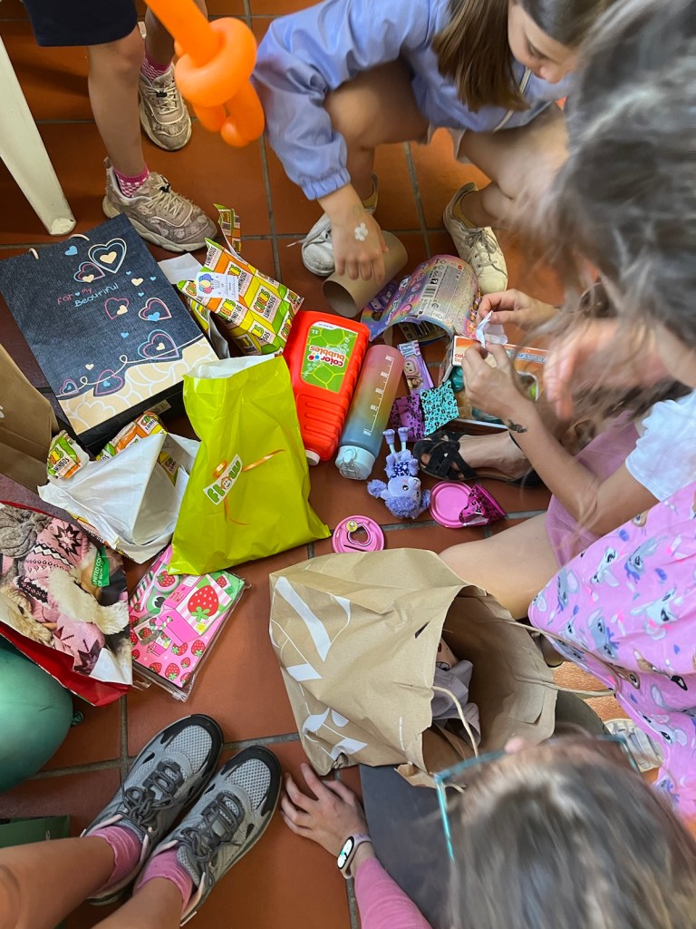 Chwila rozpakowywania prezentów zawsze ciekawa. To piękne, że koleżanki solenizantki cieszą się tym tak samo, jak ona.Waleczny kotek