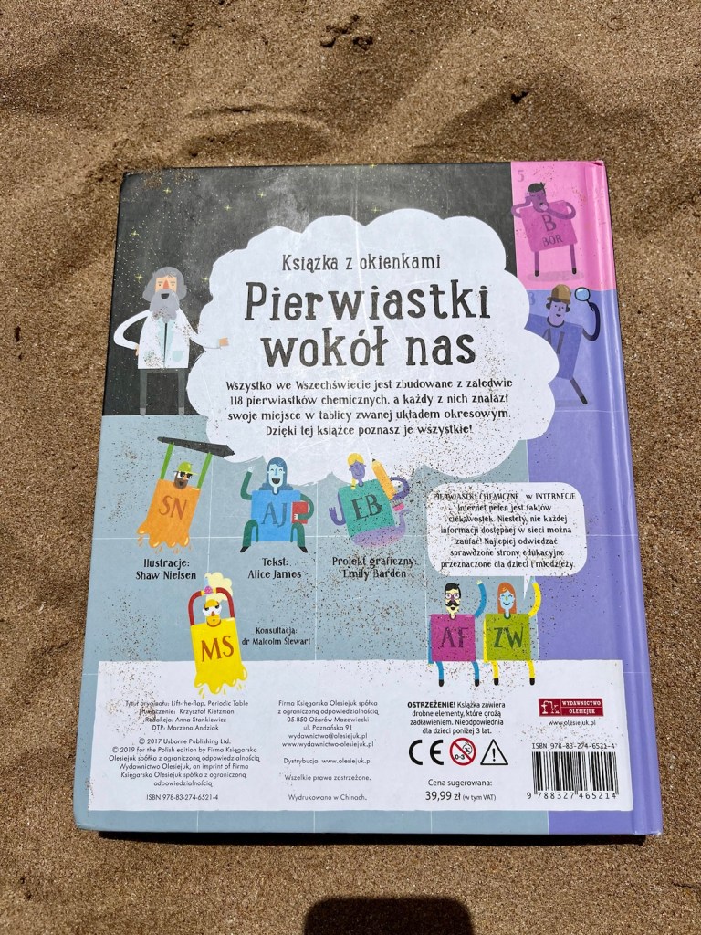 Książki z okienkami to u nas hit od dawna. Wcale nie muszą kojarzyć się z książeczkami dla maluchów. Starszaki też dają się wciągnąć w szukanie ukrytych informacji. A to zaciekawienie sprzyja przyswajaniu wiedzy. „Pierwiastki wokół nas” zostały wyciągnięte przez córkę po pewnych czasie leżakowania na półce. Zupełnie niespodziewanie. Po prostu pewnego dnia rano pojawiło się po raz kolejny naglące zainteresowanie tematem.