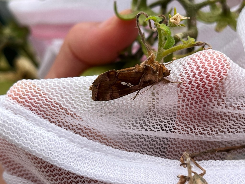 Prawdopodobnie Chrysodeixis chalcites- Pętlak pomidorowy z rodziny sówkowatych, z podrodziny błyszczek